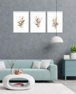 A coordinated 3-in-1 picture frame collection featuring soft neutral florals in beige, taupe, and white for a calm, modern look. Elegant botanical forms add warmth to living rooms, bedrooms, or hallways—premium finish and ready to hang.