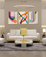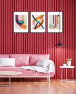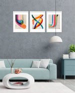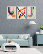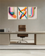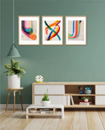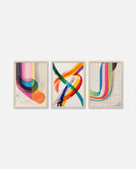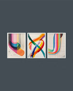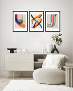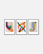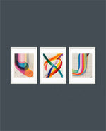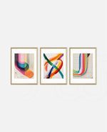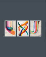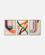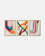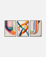 A coordinated 3-in-1 picture frame collection of bold spectrum ribbons and flowing curves, blending modern abstract lines with minimalist balance. Vivid layers add energy to living rooms or offices while staying refined—premium finish, ready to hang.