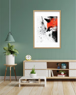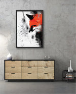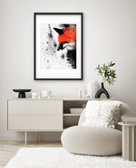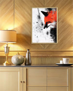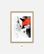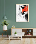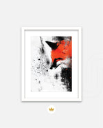 A bold and expressive portrait of a fox emerging through splashes of fiery orange and deep black ink strokes. This dynamic picture frame blends abstract energy with sharp detail, creating a powerful focal piece for any modern interiorÑcrafted with artistic depth and ready to hang.