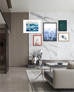 A bold watercolor artwork capturing powerful ocean waves in layered blue tones. This dynamic picture frame brings depth, movement, and a refreshing coastal edge to any dŽcor Ñ ready to hang.