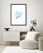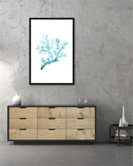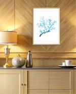 A soothing blue watercolor coral illustration that brings a fresh coastal vibe to any room. This elegant picture frame adds gentle color, calm, and seaside charm to your dŽcor Ñ ready to hang.