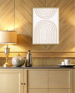 Minimal layered arches in warm neutrals, designed as wall art prints and framed wall art for picture frames and photo frames, adding creative wall decor as modern wall art for living room wall art and decorative wall pieces, ready to hang.