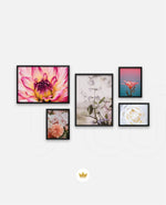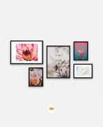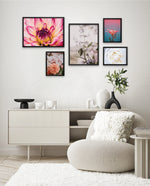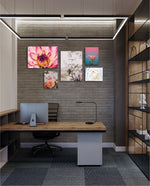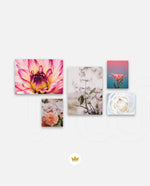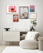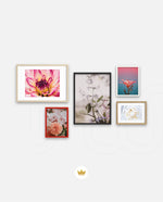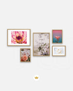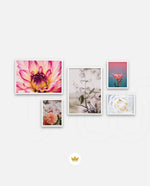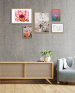 A soft and elegant floral collage artwork featuring close-up blossoms, pastel petals, delicate stems, and gentle colour gradients arranged in a balanced gallery composition that adds warmth, freshness, and graceful charm to contemporary interior wall...