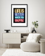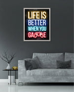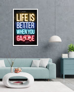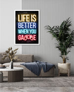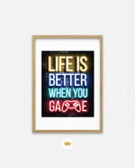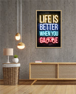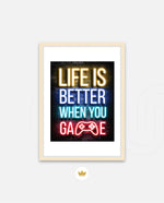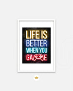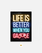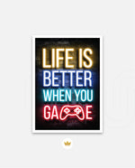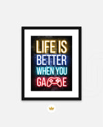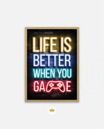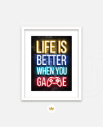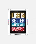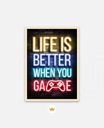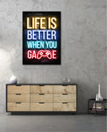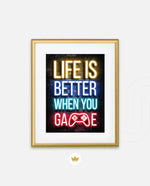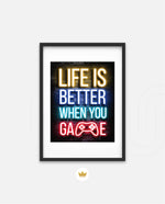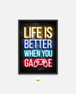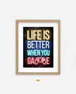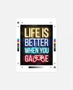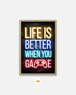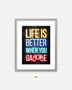 A bold neon typography artwork with a glowing game controller, designed as wall art prints and framed wall art for picture frames, photo frames, modern wall art, gaming rooms, and decorative wall pieces, ready to hang.