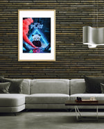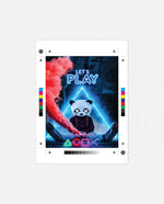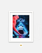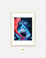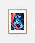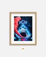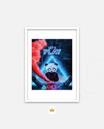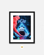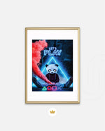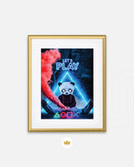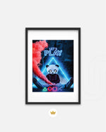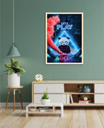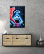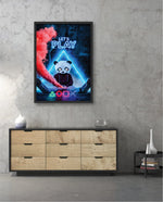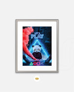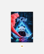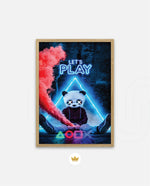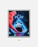 A neon panda gamer artwork with glowing symbols and bold attitude, designed as wall art prints and framed wall art for picture frames, photo frames, creative wall decor, modern wall art, living room wall art, and decorative wall pieces, ready to hang.