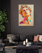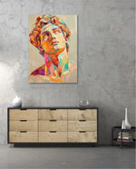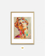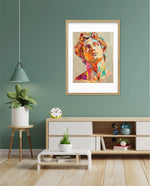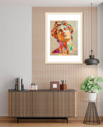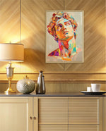 A vibrant sculptural portrait in layered colors, created as wall art prints and framed wall art for picture frames and photo frames, adding creative wall decor as modern wall art for living room wall art and decorative wall pieces, ready to hang.