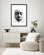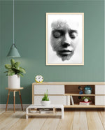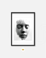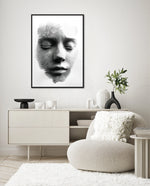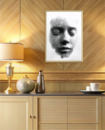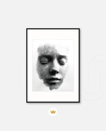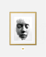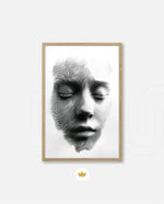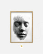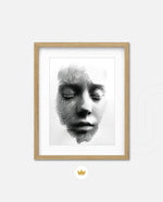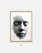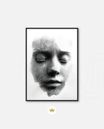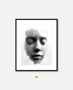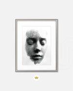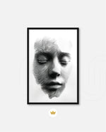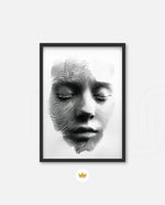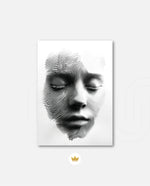 A striking abstract portrait crafted from flowing black lines that form the delicate contours of a face. With eyes gently closed, it evokes silence, reflection, and inner calm. The interplay of light and shadow creates...