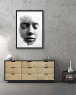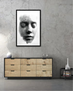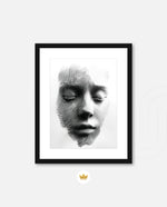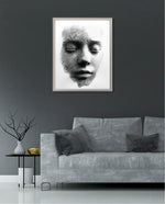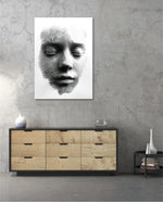 A striking abstract portrait crafted from flowing black lines that form the delicate contours of a face. With eyes gently closed, it evokes silence, reflection, and inner calm. The interplay of light and shadow creates a mesmerizing depth, making it a powerful statement piece for modern and contemporary interiors.