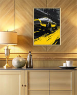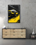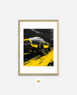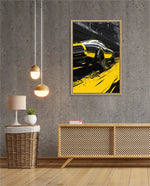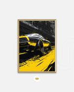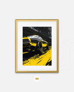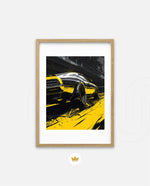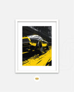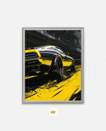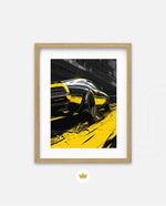 A dynamic artwork capturing the raw power of motion Ñ a muscle car tearing through neon-lit city streets in striking black and yellow tones. Perfect for automotive enthusiasts who love speed, energy, and urban attitude. This picture frame brings bold style and adrenaline to any space, ready to hang.