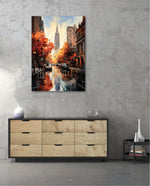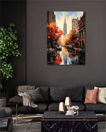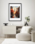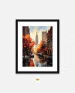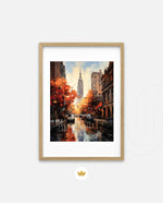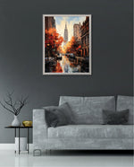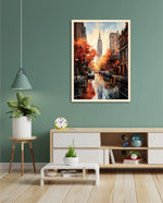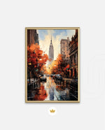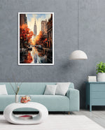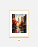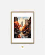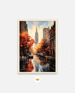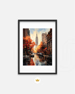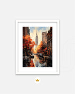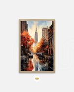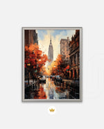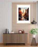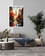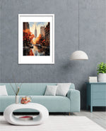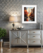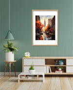 A rain-kissed city street glowing with autumn tones, designed as wall art prints and framed wall art for picture frames and photo frames, adding creative wall decor as modern wall art for living room wall art and decorative wall pieces, ready to hang.