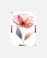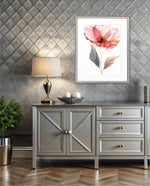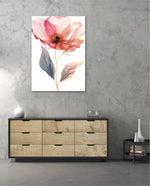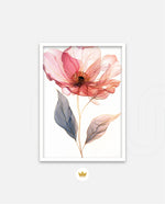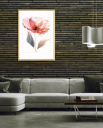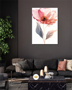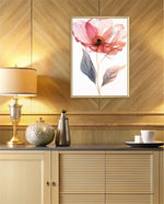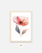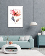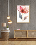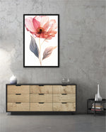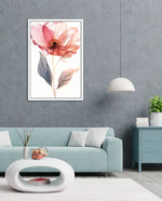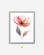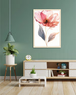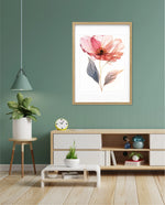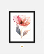 A graceful picture frame artwork of a soft pink flower with delicate petals and golden-lined leaves. This decor piece brings a natural and calming touch to any wall setting.