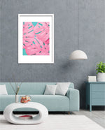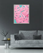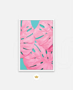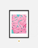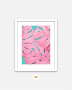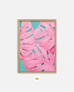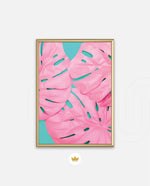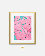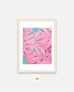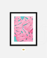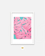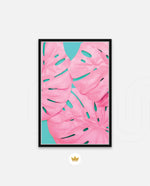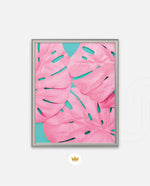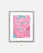 Soft pink tropical leaves over a fresh teal base, designed as wall art prints and framed wall art for picture frames and photo frames, adding creative wall decor as modern wall art for living room wall art and decorative wall pieces, ready to hang.