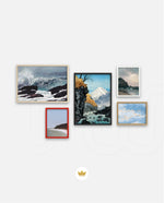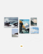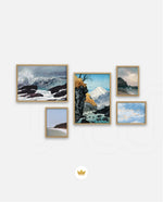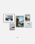 A calm mountain landscape with flowing water and layered rocks, designed as wall art prints and framed wall art for picture frames, photo frames, and modern wall decor, ready to hang.