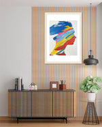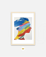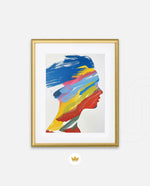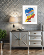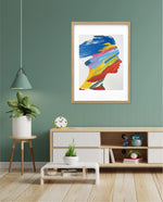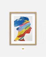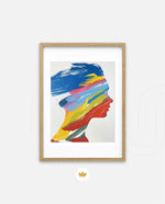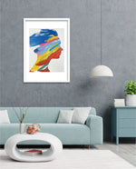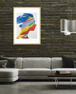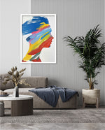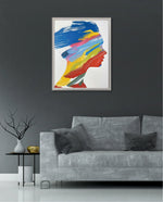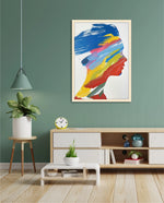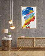 A modern artwork featuring a human silhouette filled with bold sweeping brushstrokes of blue, yellow, red, green, and pink, creating a vibrant fusion of colour and abstract motion; this picture frame brings contemporary energy and artistic expression to any wall dŽcor space, beautifully crafted and ready to hang.