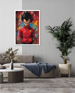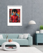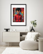 A fierce anime-style warrior in a bold red jacket, designed as wall art prints and framed wall art for picture frames and photo frames, adding creative wall decor as modern wall art for living room wall art and decorative wall pieces, ready to hang.