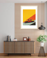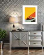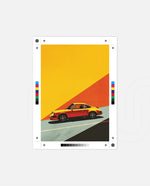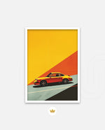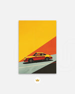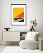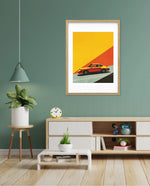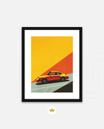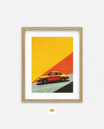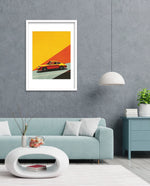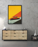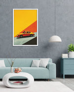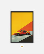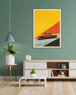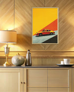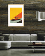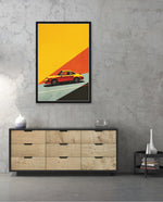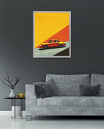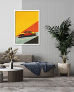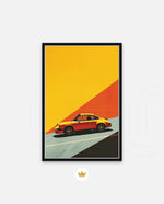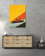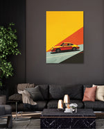 A classic sports car against bold geometric colors, styled as wall art prints and framed wall art for picture frames and photo frames, adding creative wall decor as modern wall art for living room wall art and decorative wall pieces, ready to hang.