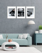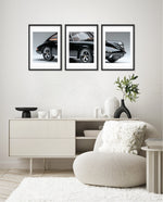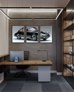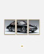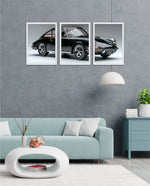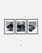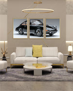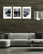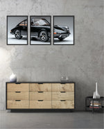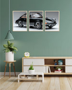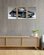 A sleek black vintage sports car crafted as wall art prints and framed wall art, ideal for picture frames, photo frames, modern wall art, living room wall art, and decorative wall pieces, ready to hang.