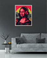 A modern twist on the iconic Mona Lisa, reimagined with bold pop-art colors and sleek headphones. This picture frame artwork blends classic elegance with contemporary culture, making it a unique décor statement for music lovers and art enthusiasts alike.
