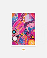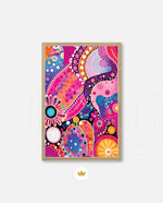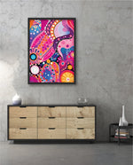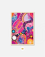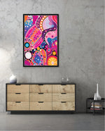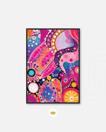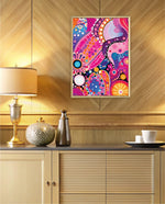 An explosion of vivid colours and swirling patterns, this abstract artwork radiates joy and dynamic energy. Dotted textures and flowing shapes create a lively sense of rhythm, almost like a visual dance. Perfectly bold and...